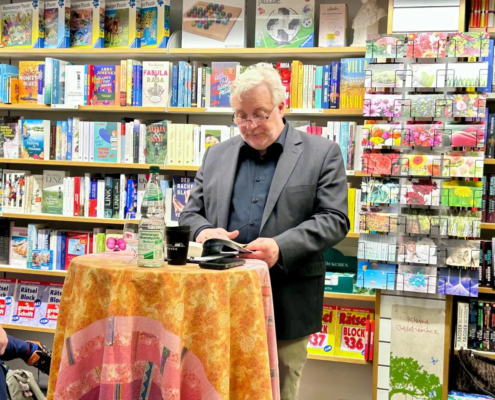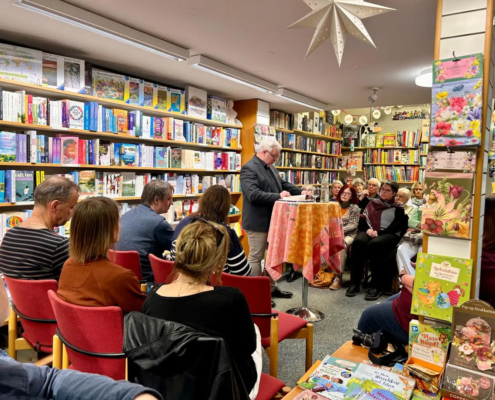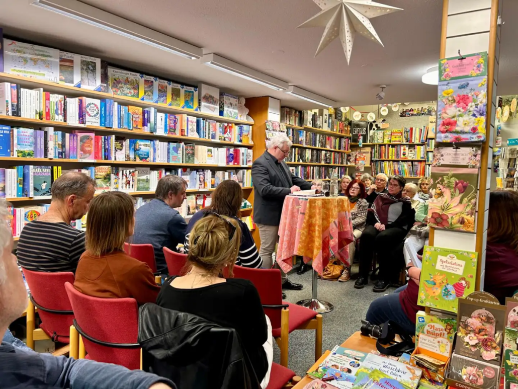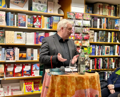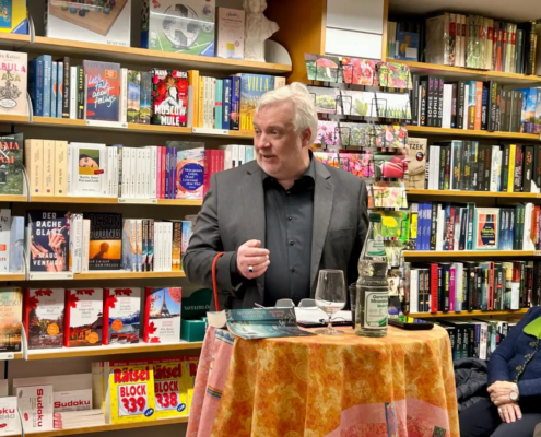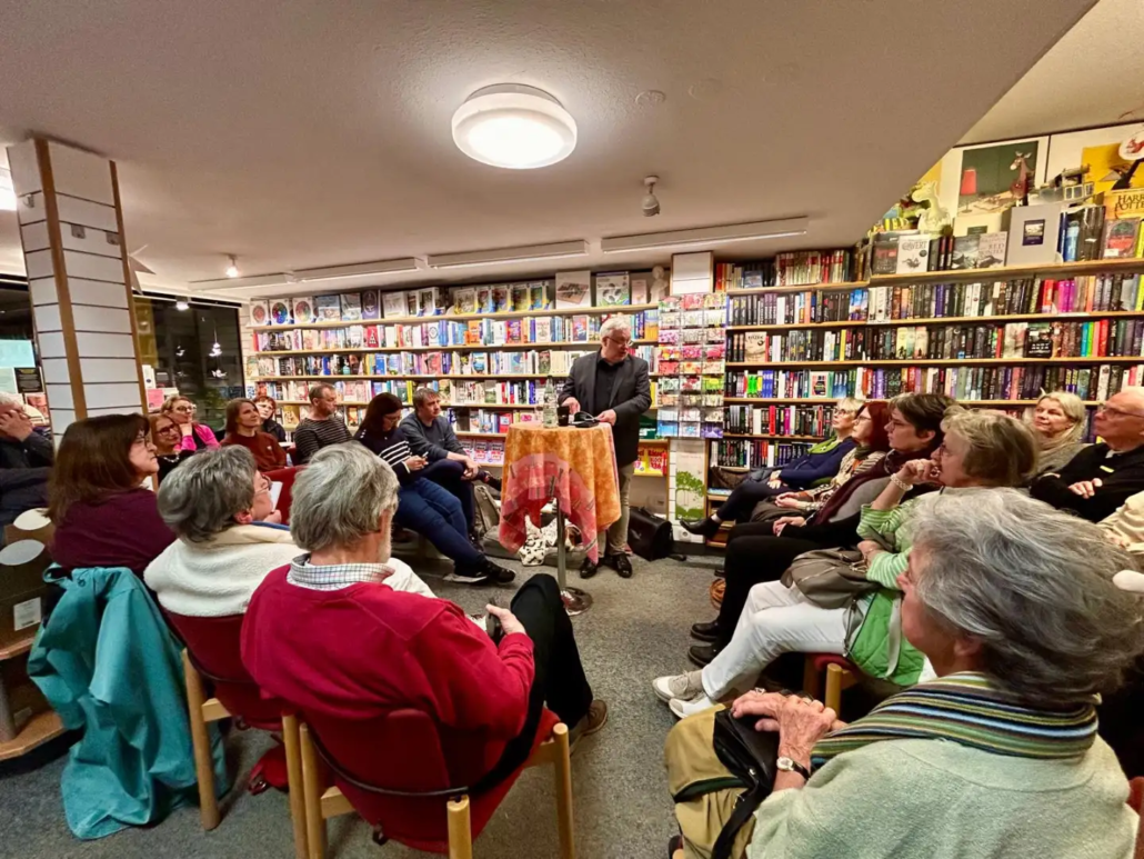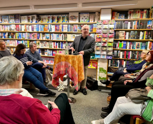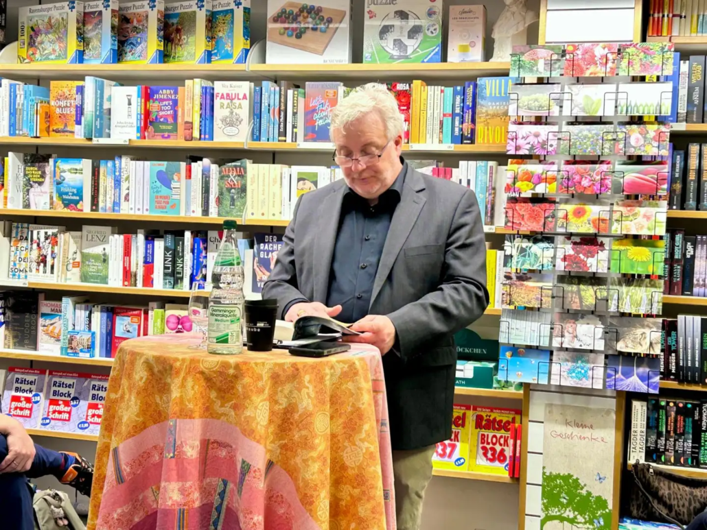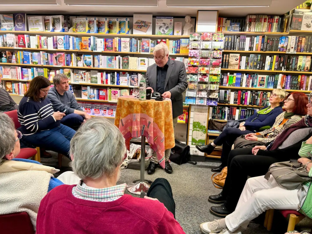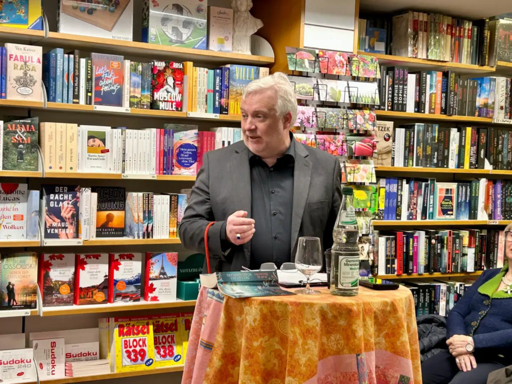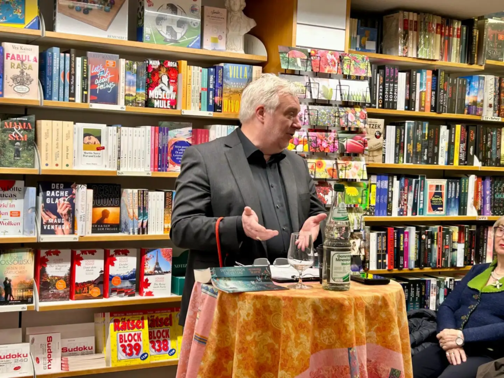 Mit lebendiger Erzählweise und viel historischem Wissen nahm Herr Dorweiler das Publikum mit in die Welt seines Romans und berichtete über historische Hintergründe sowie über die Figuren und Themen, die ihn beim Schreiben besonders bewegt haben.